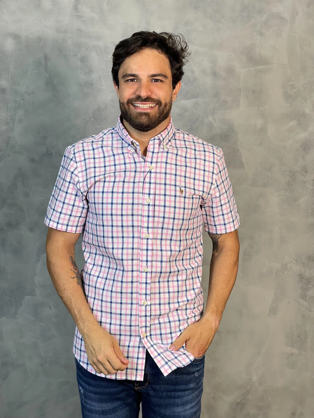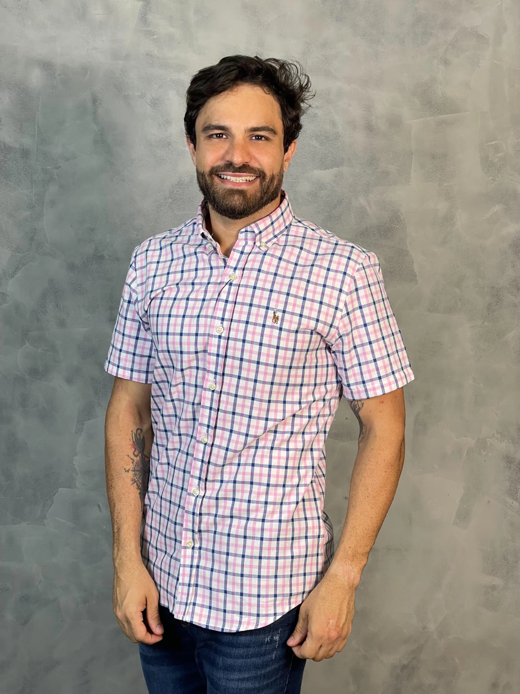 A Camisa Americana Ralph Lauren Oxford Rosa Manga Curta une o charme do tom rosa com a sofisticação atemporal da Ralph Lauren. Confeccionada em tecido Oxford 100% algodão, oferece toque suave, estrutura firme e respirabilidade ideal para o dia a dia. O corte americano proporciona caimento elegante, enquanto o bordado do Pony Ralph Lauren no peito adiciona o toque de exclusividade característico da marca. Perfeita para quem busca um visual moderno e refinado, sem abrir mão do conforto.