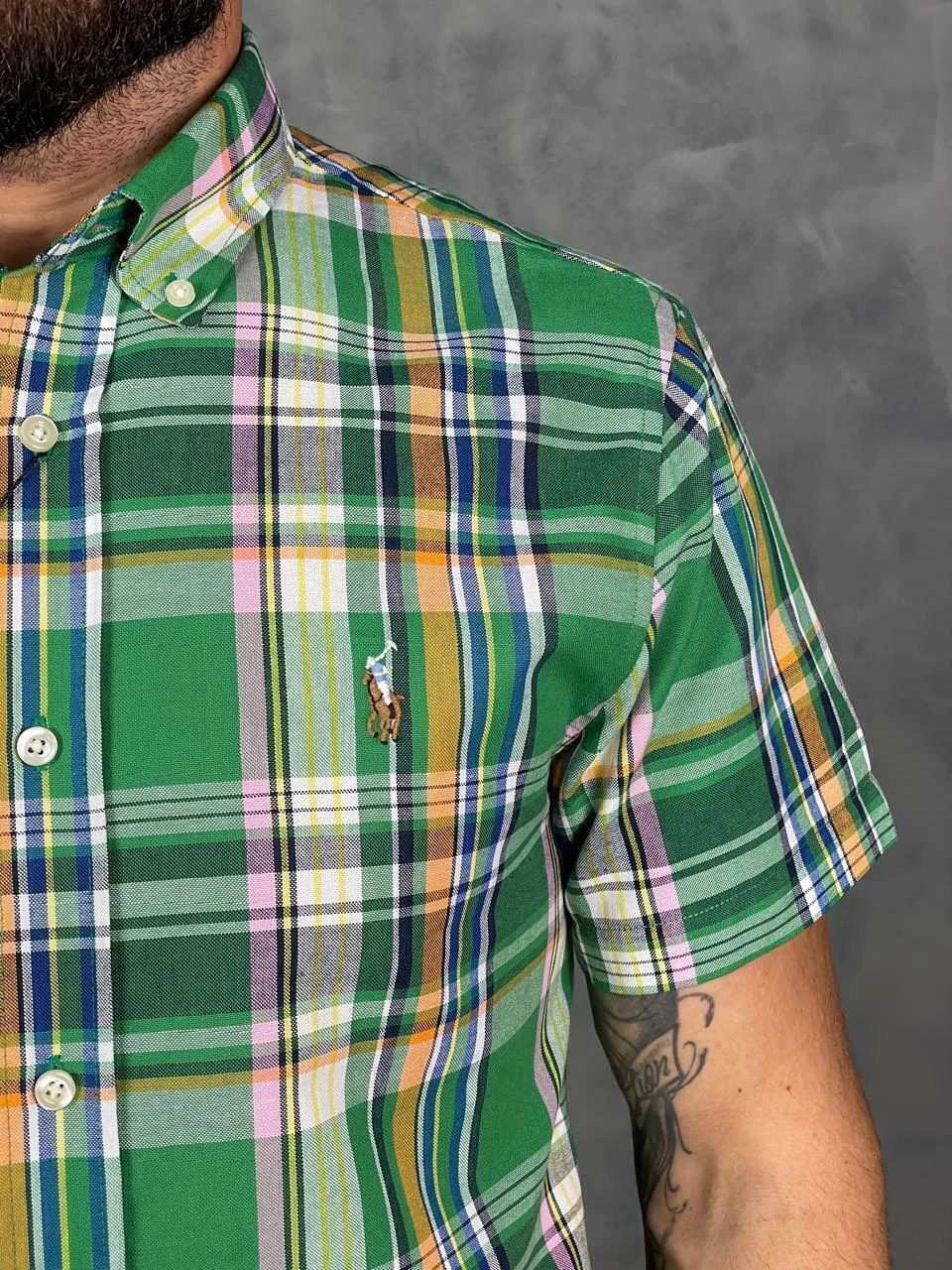 Eleve o visual com essa peça sofisticada e casual: a camisa Ralph Lauren masculina em tom verde, com design clean e acabamento refinado. A modelagem Custom Fit oferece um corte moderno que valoriza a silhueta com conforto e estilo.