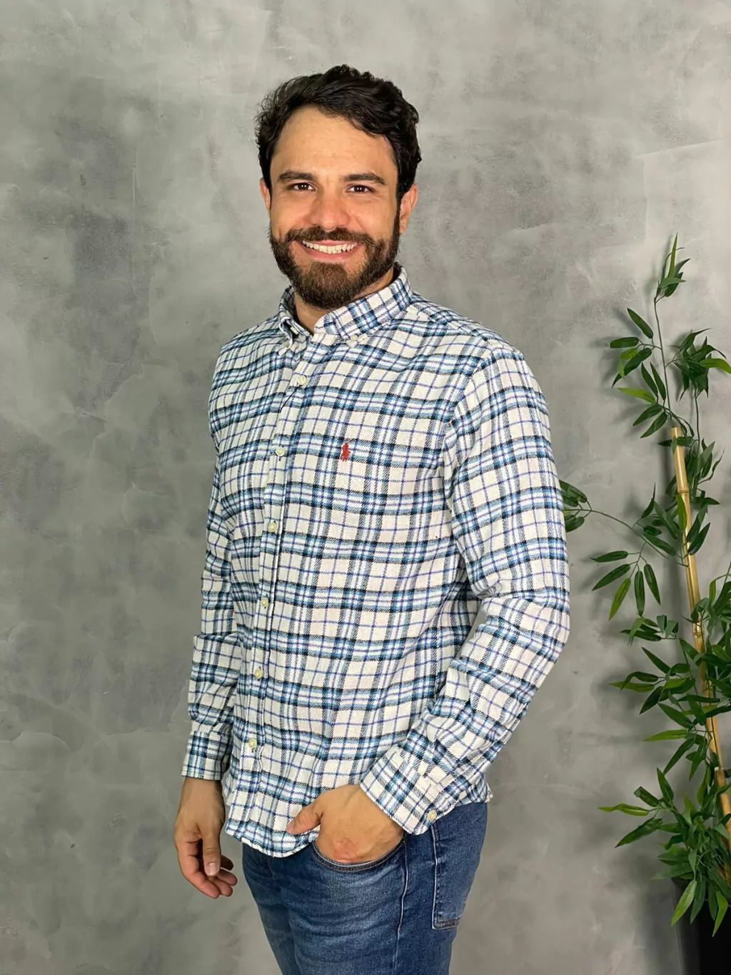 Apresentamos a Camisa Flanelada Ralph Lauren Manga Longa Branca, uma peça original que une conforto e estilo de maneira excepcional.