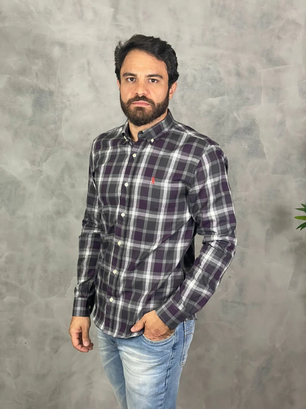 Apresentamos a Camisa Flanelada Ralph Lauren Manga Longa Cinza, uma peça original que une estilo e conforto de forma excepcional.
