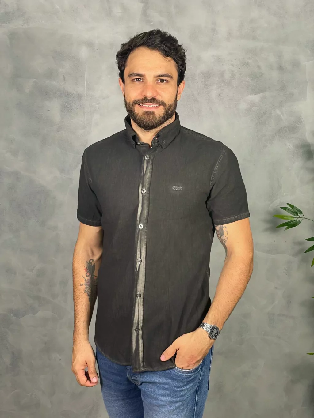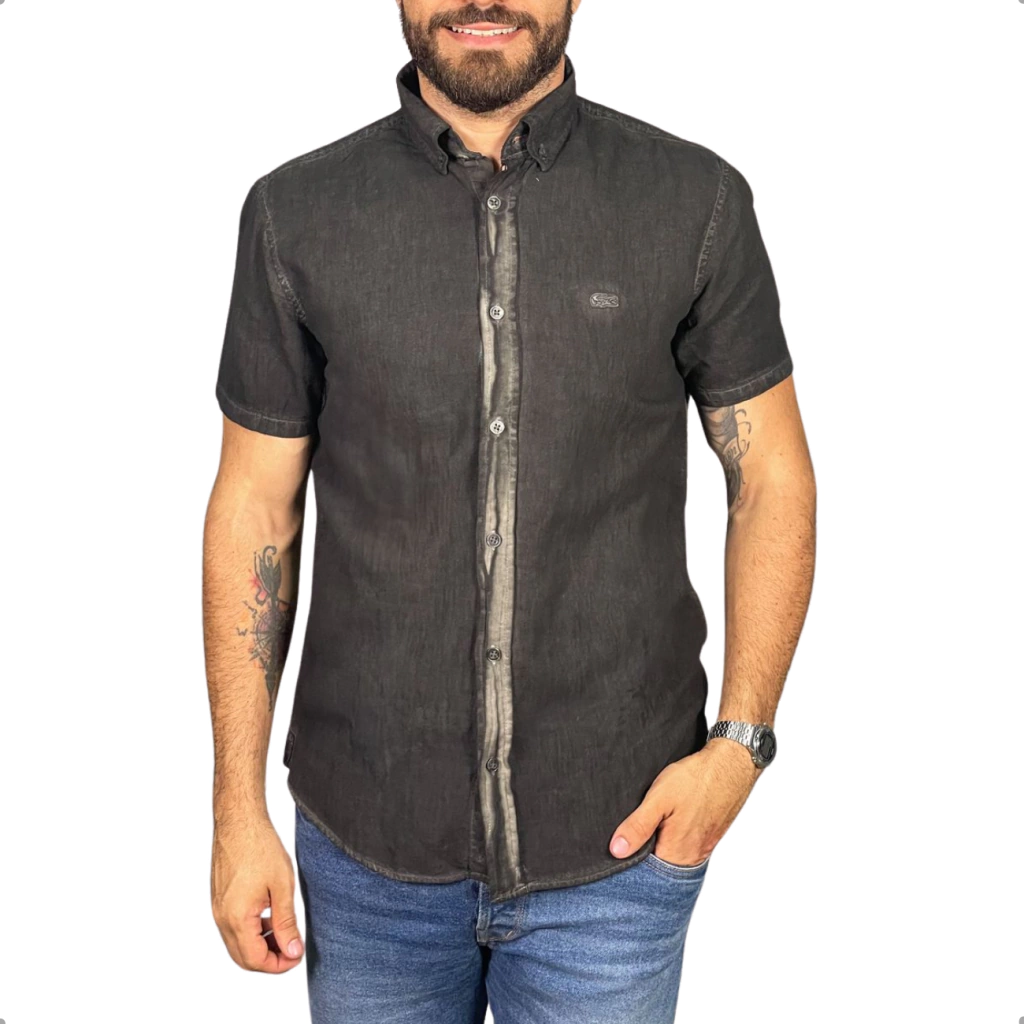 Confeccionada em linho de alta qualidade, esta camisa é leve e respirável, ideal para os dias quentes do Brasil. O tom estonado de preto confere um visual moderno e sofisticado, perfeito para diversas ocasiões, desde um passeio descontraído até um jantar mais formal.