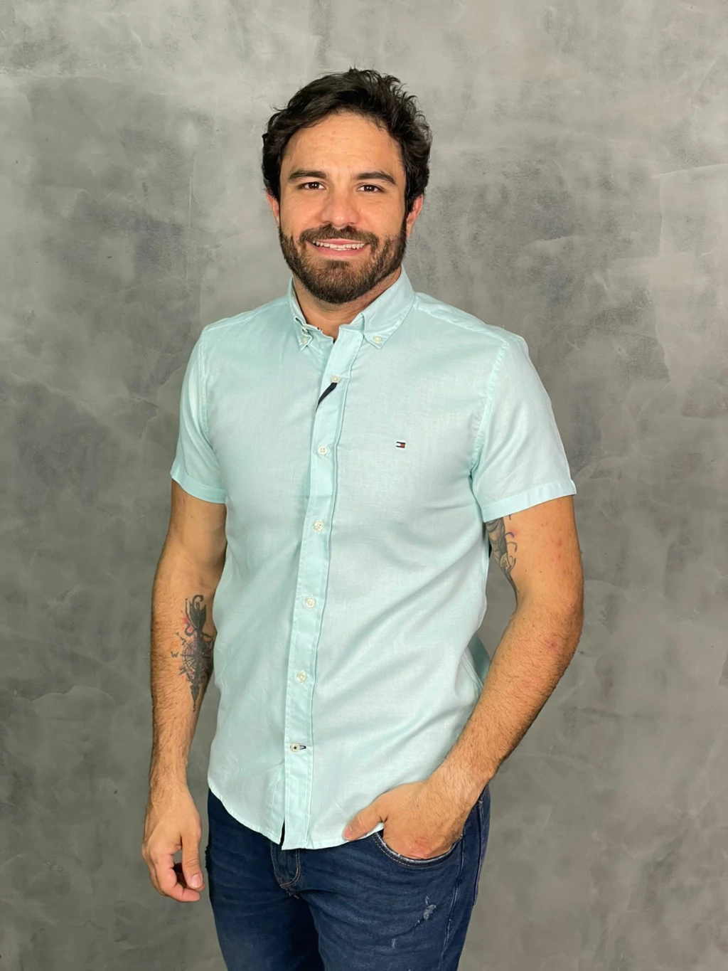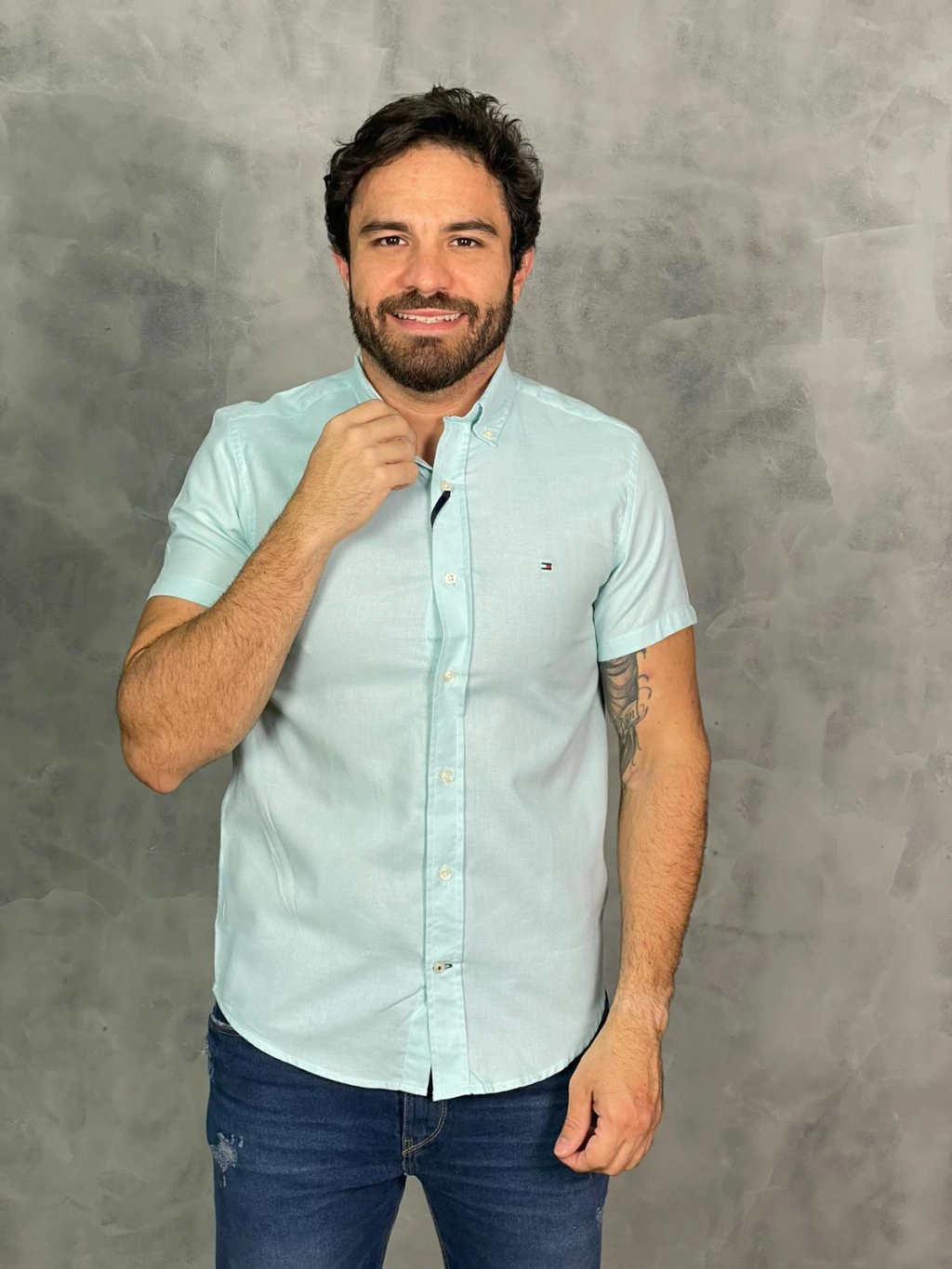 Camisa Oxford Tommy Hilfiger Manga Curta Verde: Elegância e Conforto para o Dia a Dia