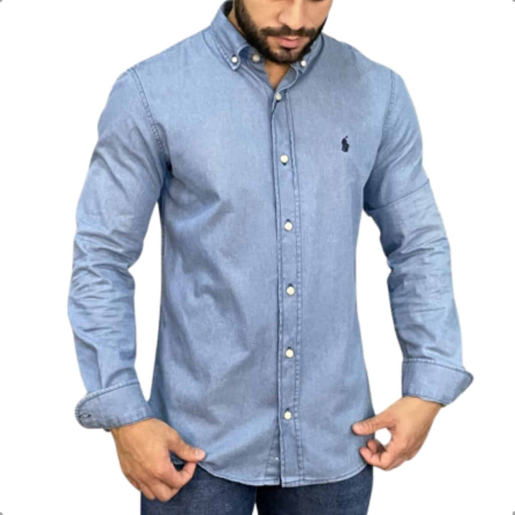 Apresentamos a Camisa Ralph Lauren Manga Longa Jeans Claro Masculino, uma peça original que traz a combinação perfeita de estilo e conforto.
