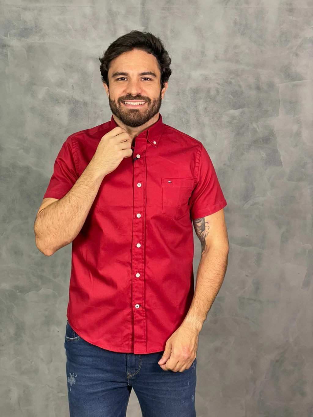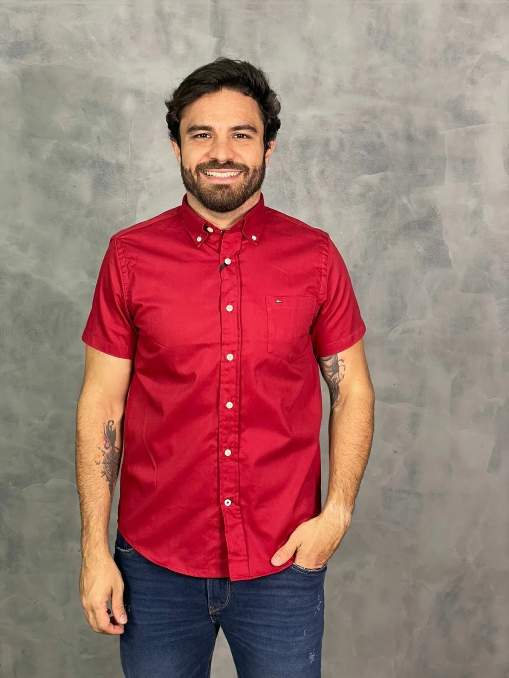 Não perca a oportunidade de elevar seu visual! Adquira agora a sua Camisa Sarja Tommy Hilfiger Bolso Manga Curta Vermelha e destaque-se com elegância!