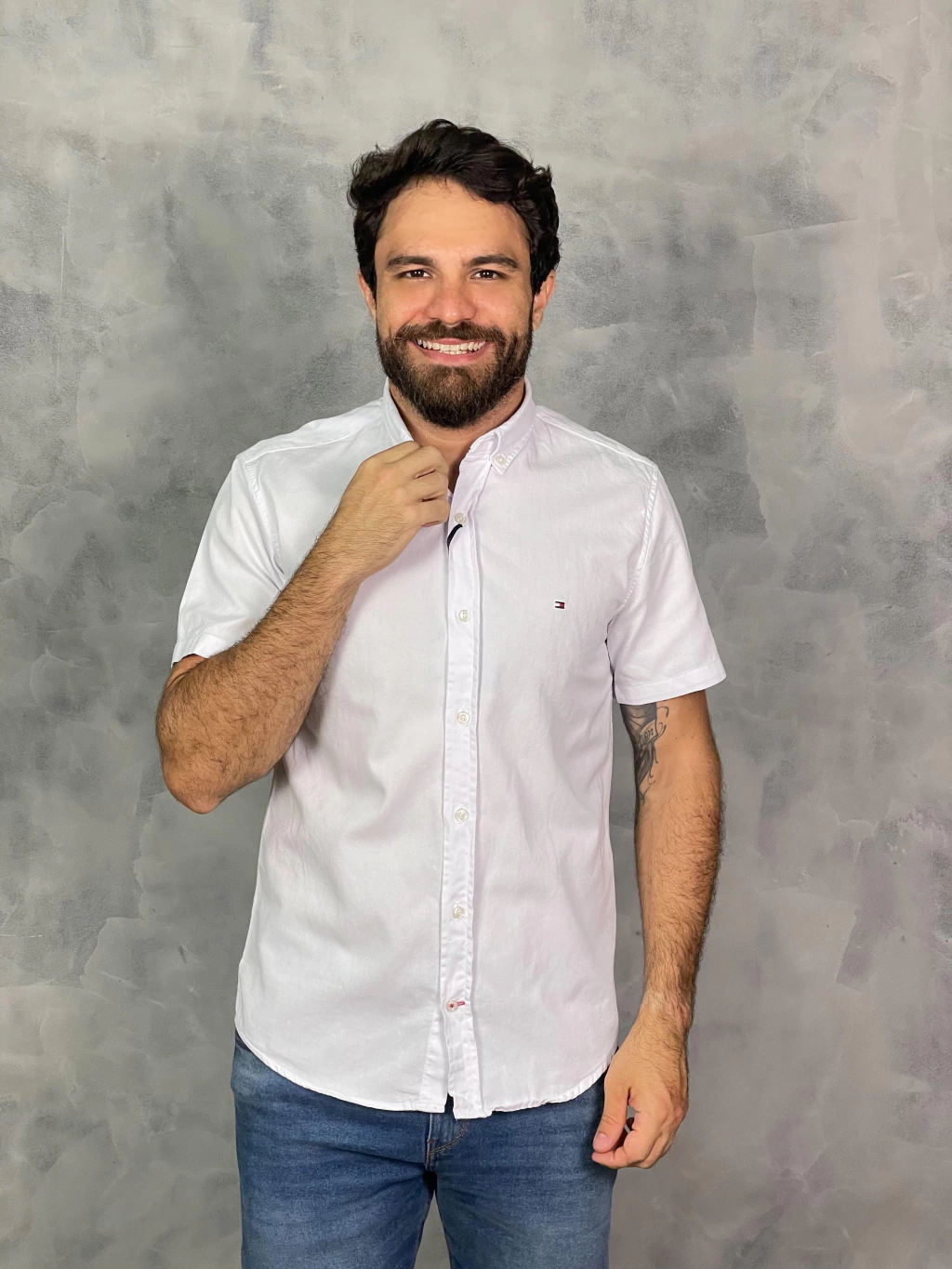 A Camisa de Sarja Tommy Hilfiger Manga Curta Branca é uma peça essencial para quem busca elegância e versatilidade em todas as ocasiões. Produzida em sarja 100% algodão premium, oferece toque suave, respirabilidade e caimento impecável. O design clássico conta com gola estruturada, botões frontais e o logo icônico Tommy Hilfiger bordado no peito, garantindo autenticidade e sofisticação.
