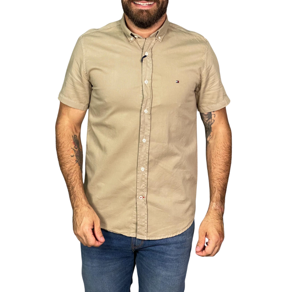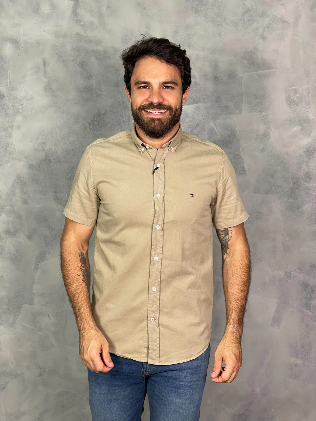 A Camisa de Sarja Tommy Hilfiger Manga Curta Caqui é a escolha perfeita para quem busca um visual moderno, sofisticado e versátil. Confeccionada em sarja 100% algodão premium, oferece toque suave, conforto térmico e caimento impecável. O design clássico com botões frontais, gola estruturada e o icônico logo Tommy Hilfiger bordado no peito reforçam o padrão de qualidade e elegância da marca.