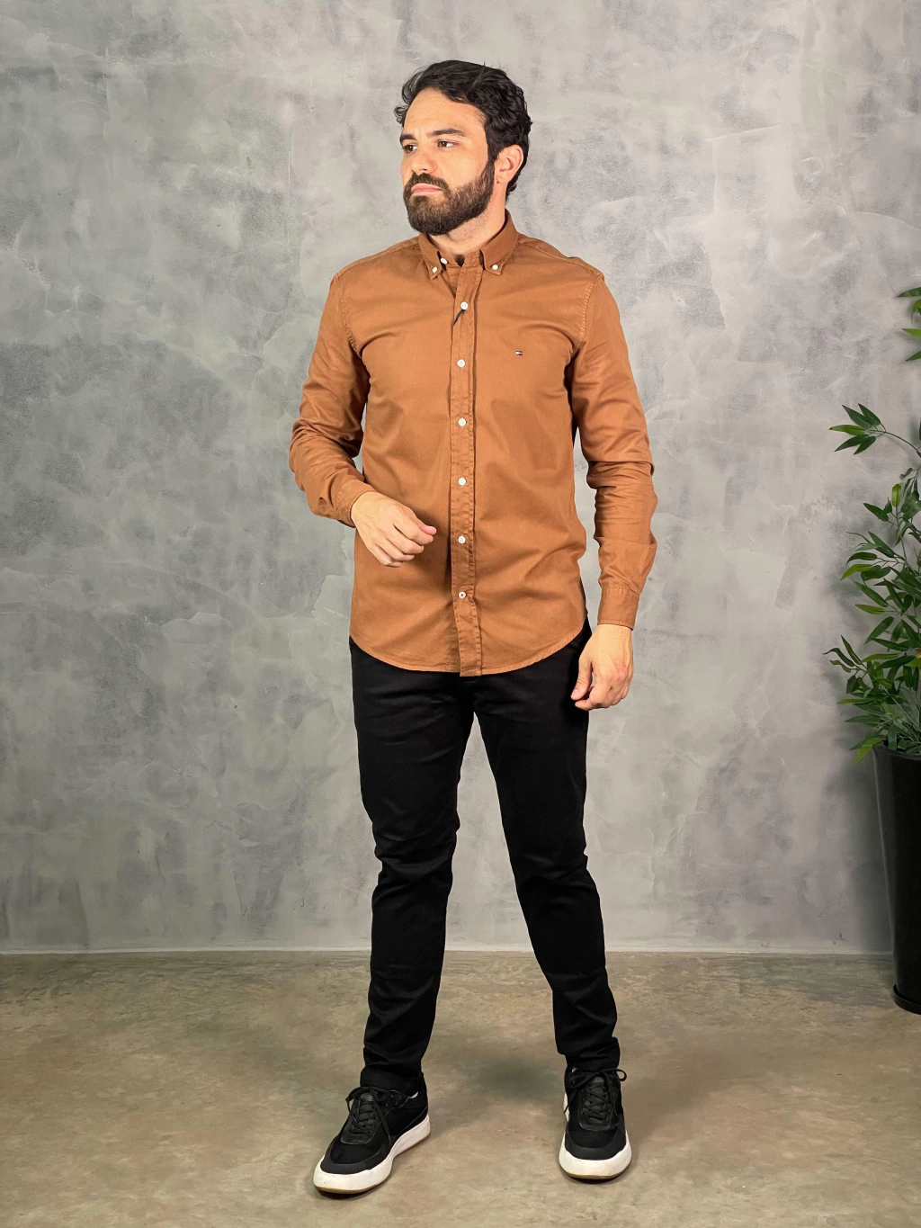 A Camisa Sarja Tommy Hilfiger Manga Longa Marrom traz um visual moderno e sofisticado, ideal para quem busca um toque diferenciado nas produções. Confeccionada em sarja de algodão de alta qualidade, oferece conforto, resistência e caimento impecável. Possui modelagem clássica, gola tradicional, fechamento por botões e o logo icônico Tommy Hilfiger bordado no peito, garantindo autenticidade e elegância. Versátil, combina facilmente com calças jeans, chino ou alfaiataria, sendo uma escolha perfeita para looks casuais ou sociais. Uma peça indispensável no guarda-roupa masculino.