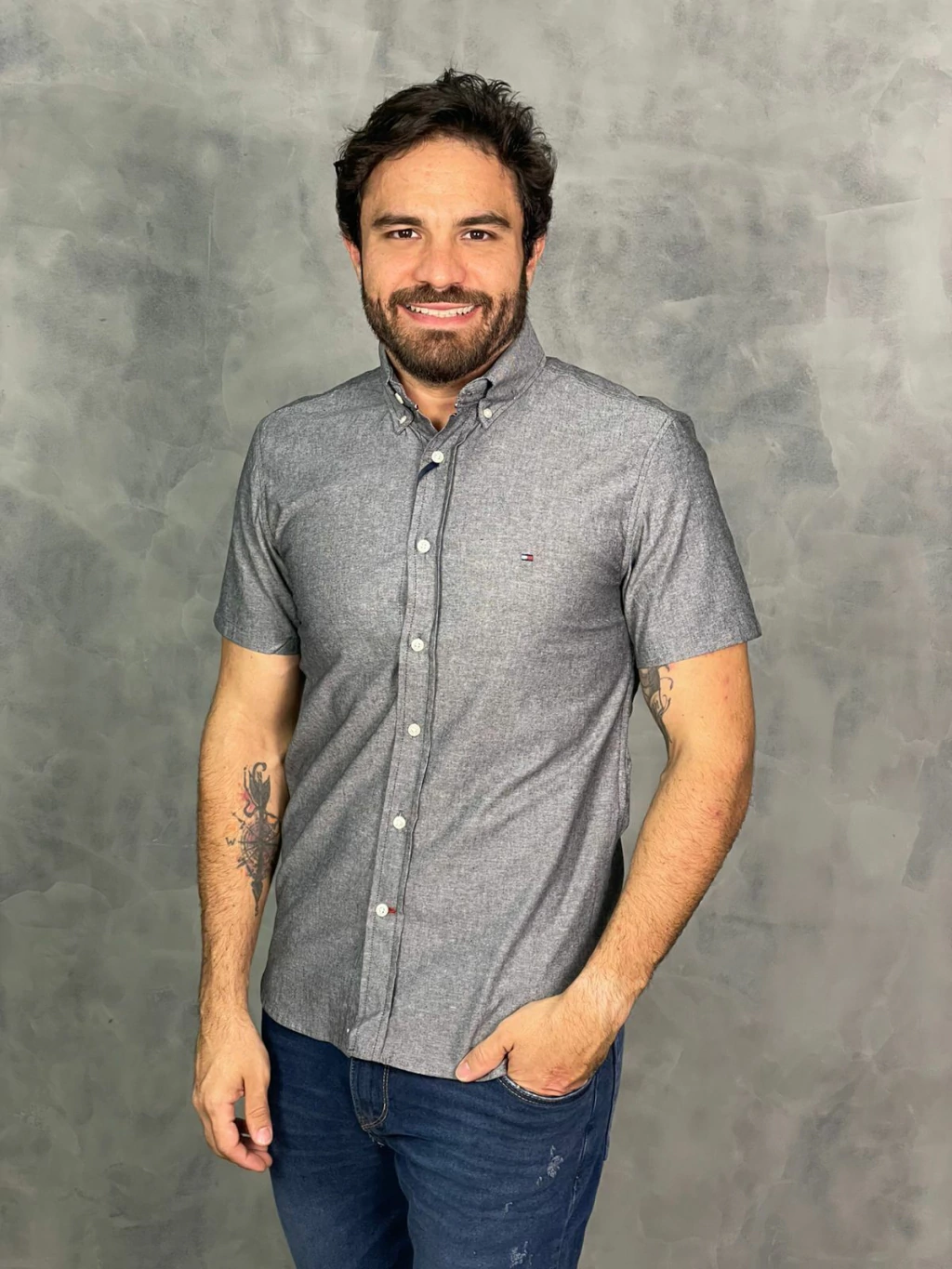Camisa Tommy Hilfiger Manga Curta Cinza: Estilo e Versatilidade