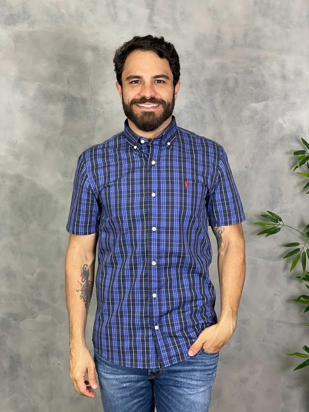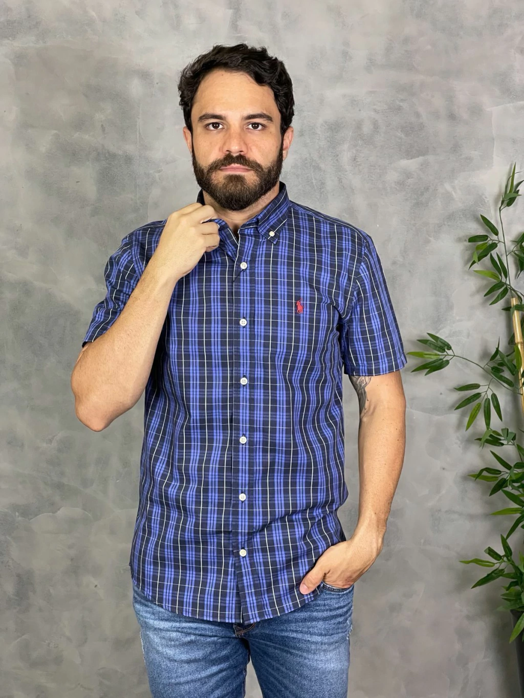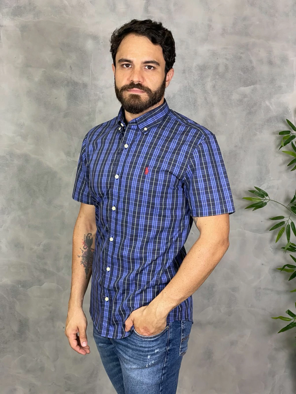 Seu design moderno e vibrante, com padrões xadrez, a torna uma peça versátil, ideal para diversas ocasiões, do casual ao semi-formal. As mangas curtas garantem conforto e frescor, permitindo que você aproveite ao máximo cada momento.