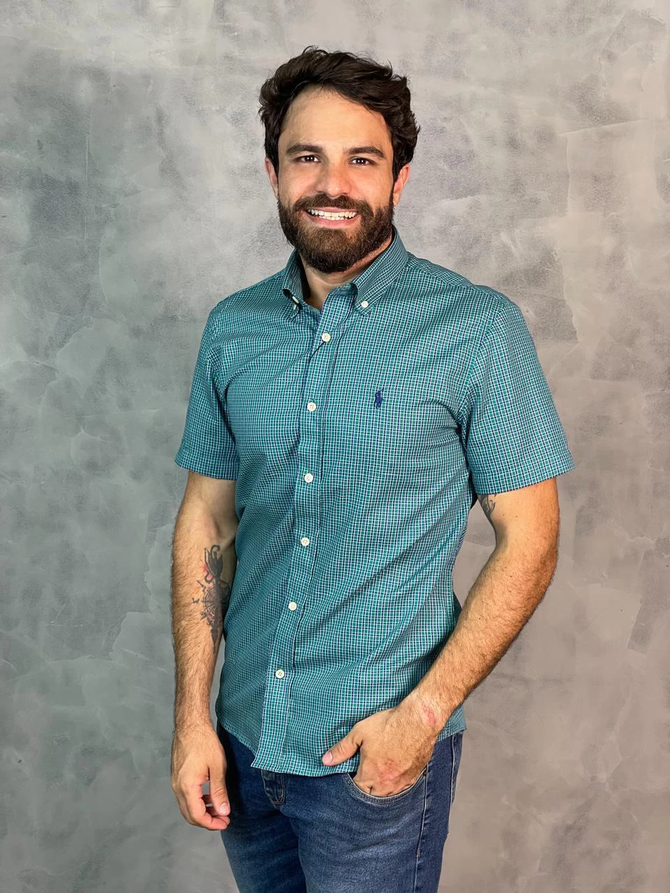 Seu xadrez elegante em tons de verde traz um visual sofisticado e versátil, ideal para compor looks casuais ou sociais descontraídos. O bordado marinho do icônico Pony Ralph Lauren no peito reforça a autenticidade e o prestígio da peça.