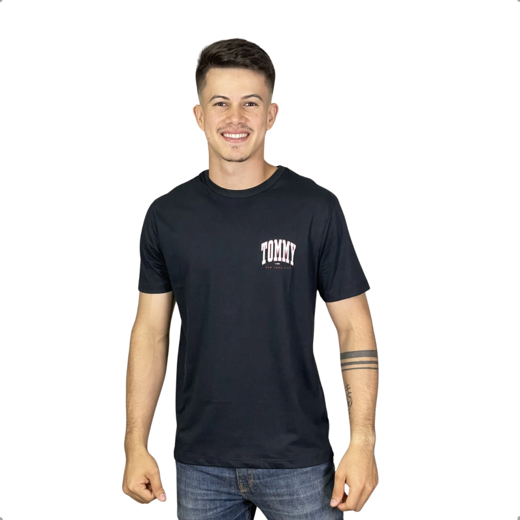 Conheça a Camiseta Tommy Hilfiger Estampada Preta, uma peça masculina e original que combina estilo e conforto para o seu dia a dia.
