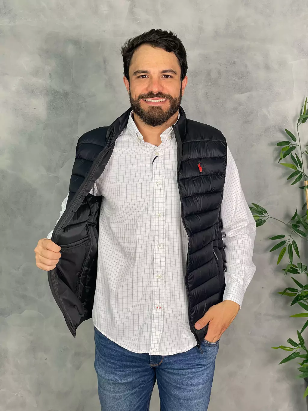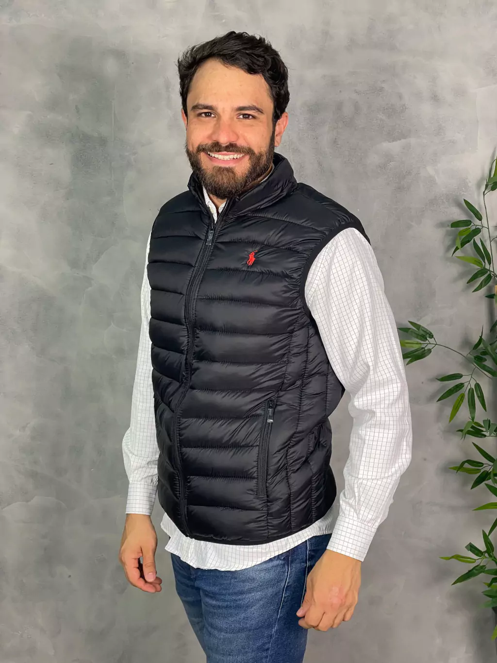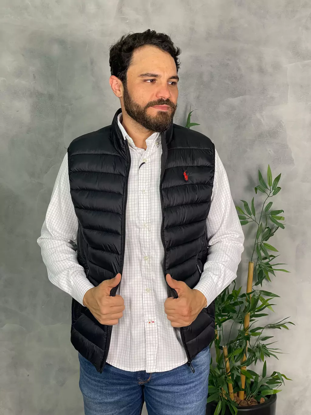 Conheça o Colete Puffer Ralph Lauren Preto, uma peça essencial que combina estilo e funcionalidade para o homem moderno.