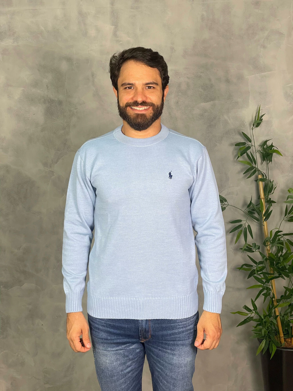 O suéter Ralph Lauren azul céu com o icônico logo "Pony" bordado em azul é uma peça elegante e versátil. Confeccionado em algodão de alta qualidade, oferece conforto e durabilidade. A modelagem regular proporciona um caimento tradicional, ideal para compor looks casuais ou formais. A tonalidade suave do azul céu combinada com o logo em azul confere um visual sofisticado e discreto.