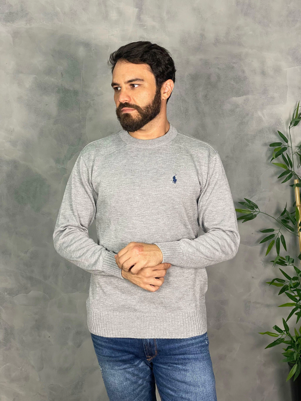 O suéter Ralph Lauren cinza mescla com o icônico logo "Pony" bordado em azul marinho é uma peça clássica e versátil. Confeccionado em algodão de alta qualidade, oferece conforto e durabilidade. A modelagem regular proporciona um caimento tradicional, ideal para compor looks casuais ou formais. A combinação da cor cinza mescla com o logo azul marinho confere um contraste elegante e discreto.